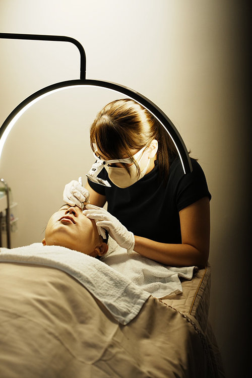 操作時間120分鐘 操作流程清潔 > 手工清粉刺 > 震波去角質 > 水飛梭 > MTS進階導入(顧客自選)> 光譜儀照光 > 軟膜敷臉 > 基礎保養