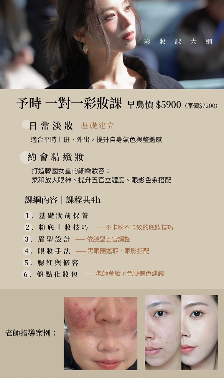 我們會幫你「盤點化妝包」,看看哪些是適合你的寶藏,哪些可能是不小心踩雷的。我們的核心理念是:不需要花大錢追求頂級專櫃,用小資預算也能畫出高級感。我們會針對你手邊的工具,矯正化妝迷思。比如那盤你覺得很難顯色的眼影,可能換個疊擦方式就美翻了。在予時,我們教的是「技巧」,而不是推銷產品。